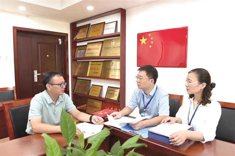 安徽省宣城市宣州区纪委监委组织力量加强对领导干部亲属违规经商办企业等情况的监督检查,严防领导干部利用职权或影响力为亲友谋利。图为近日,该区纪检监察干部在辖区企业走访了解相关情况。何冬霞 摄
