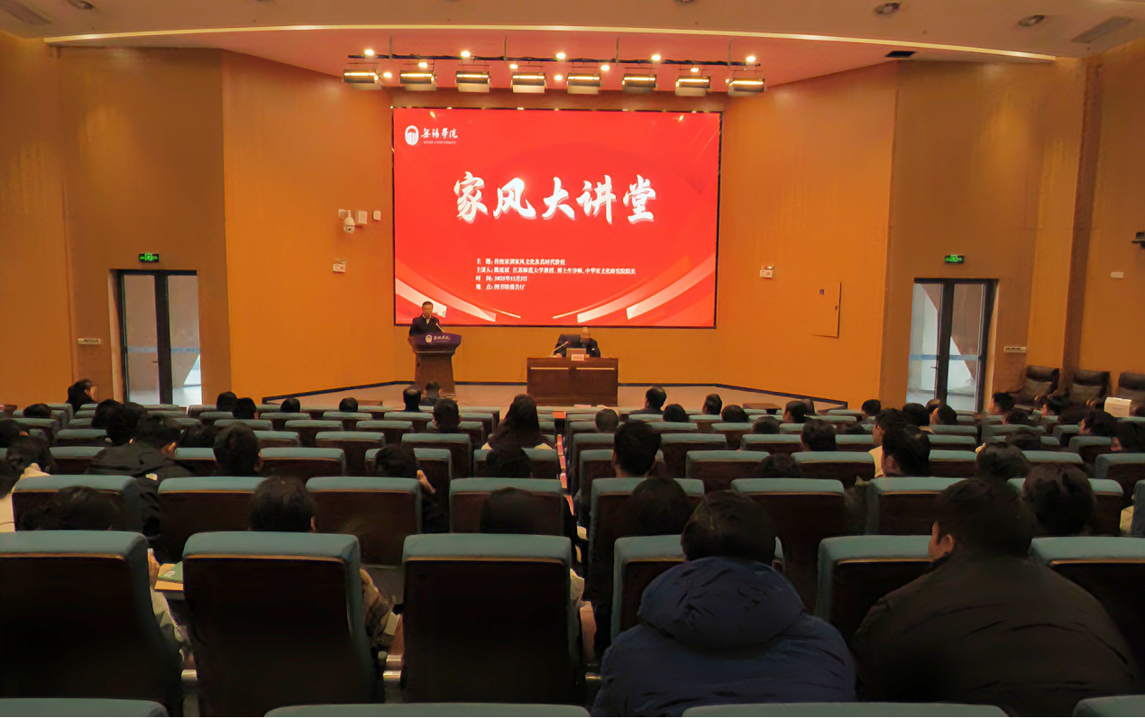 12月3日下午,学校在图书馆报告厅举行第五期家风大讲堂,邀请江苏师范大学教授、博士生导师、中华家文化研究院院长陈延斌来校作专题报告。校纪委书记王友明主持报告会并讲话。