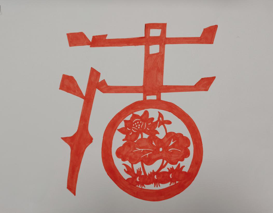 作品简介:画中以莲花作为廉的象征,孕育在“洁”字中,整幅画作以剪纸的形式,代表了中国传统文化,象征了廉洁从古到今都是我们崇高的品格。
