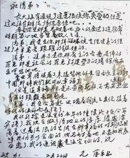 清弟,我在今年起,也踏着潮流之变化,接着时代的使命而长征了。我的行踪是没定的。去年的憧憬,终于在今年实现了。我现在做了陆地上的浮萍,随处漂荡着,过着流浪的生活,在那幸福的时期临头时,我们可以会面的。你忍耐着吧,不要和我多留恋了。我的通讯处是没定址的。