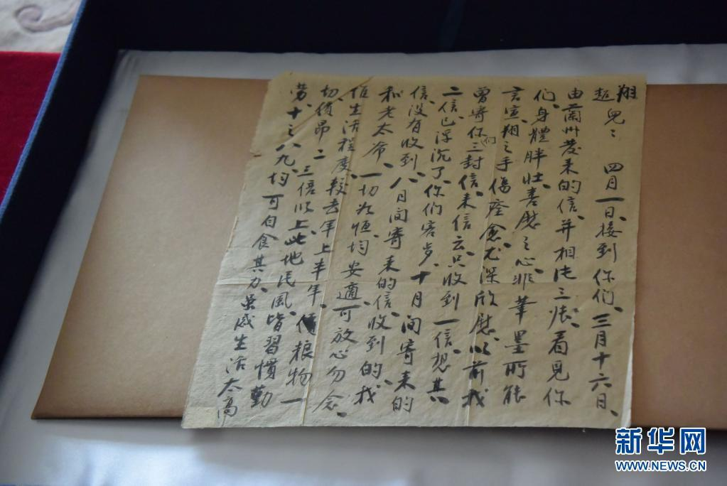 这是在周恩来邓颖超纪念馆拍摄的杨振德写给女儿邓颖超和女婿周恩来的家书(2021年3月31日摄)。 新华社记者 周润健 摄