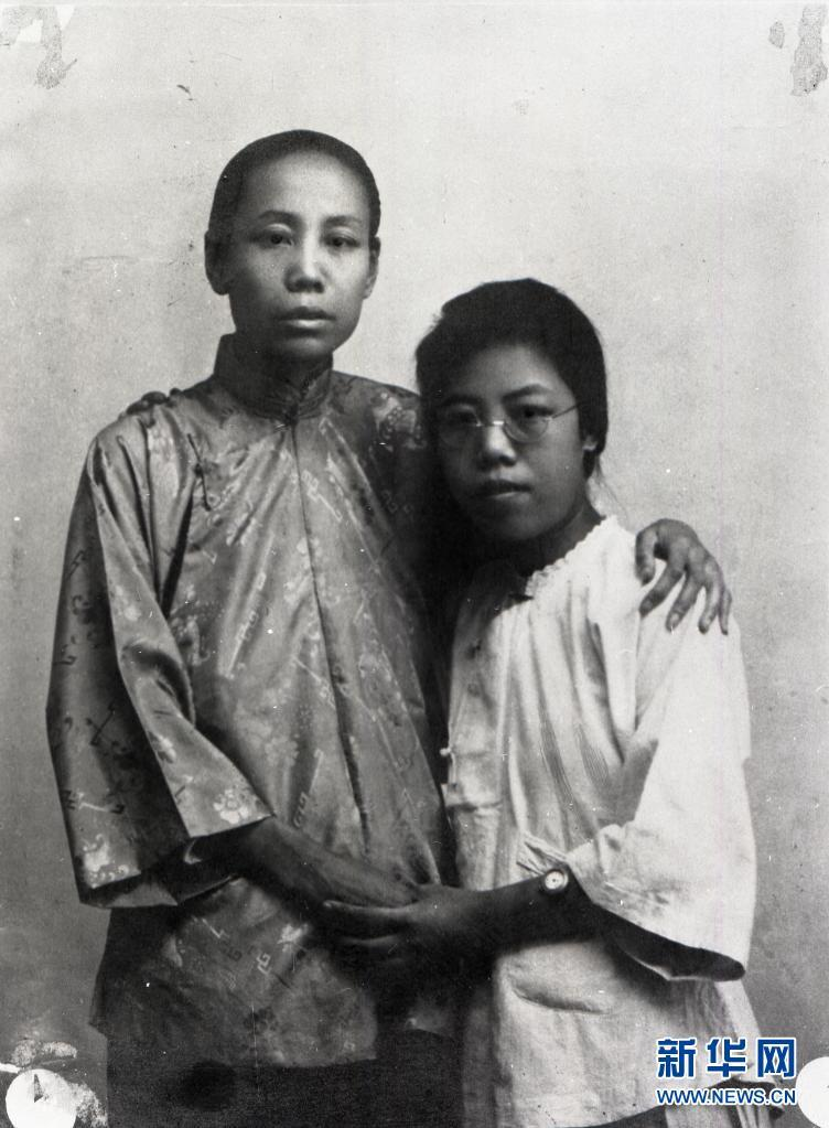 1925年邓颖超南下广州前和母亲杨振德(左)在天津合影留念(资料照片)。 新华社发(周恩来邓颖超纪念馆供图)