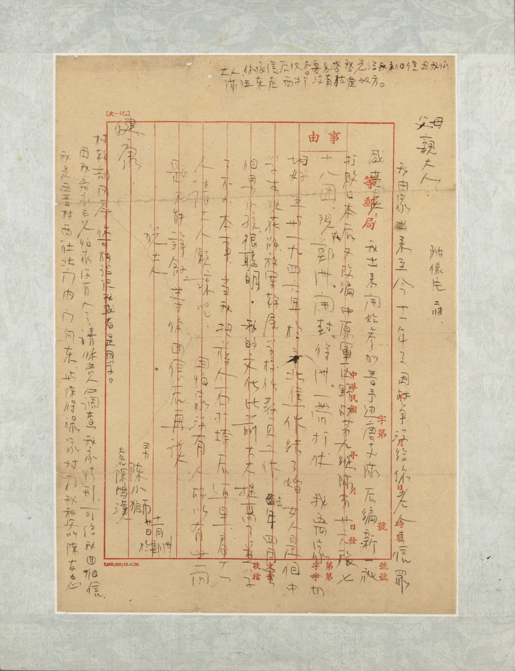 陈洪汉致父母书