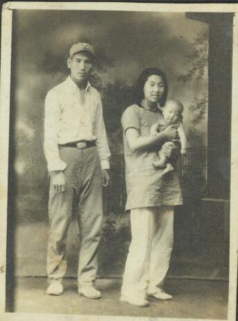 陈洪汉烈士(左一)生前和其爱人、孩子的合影