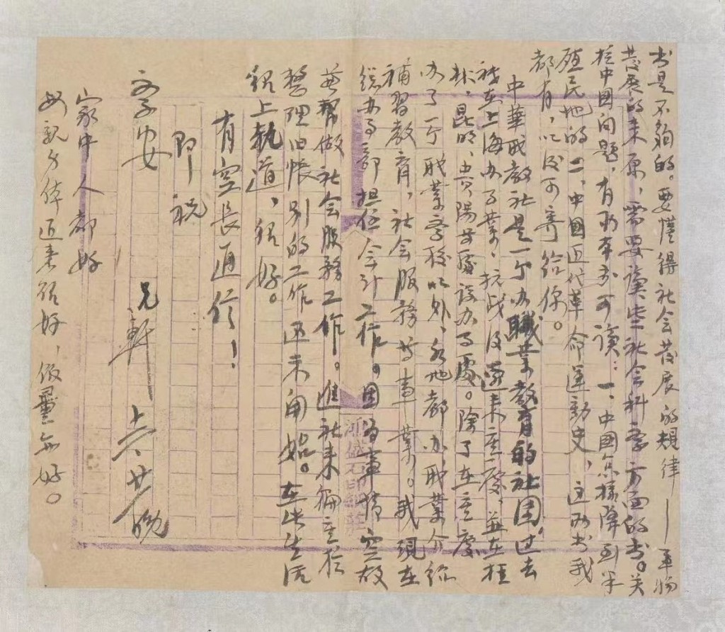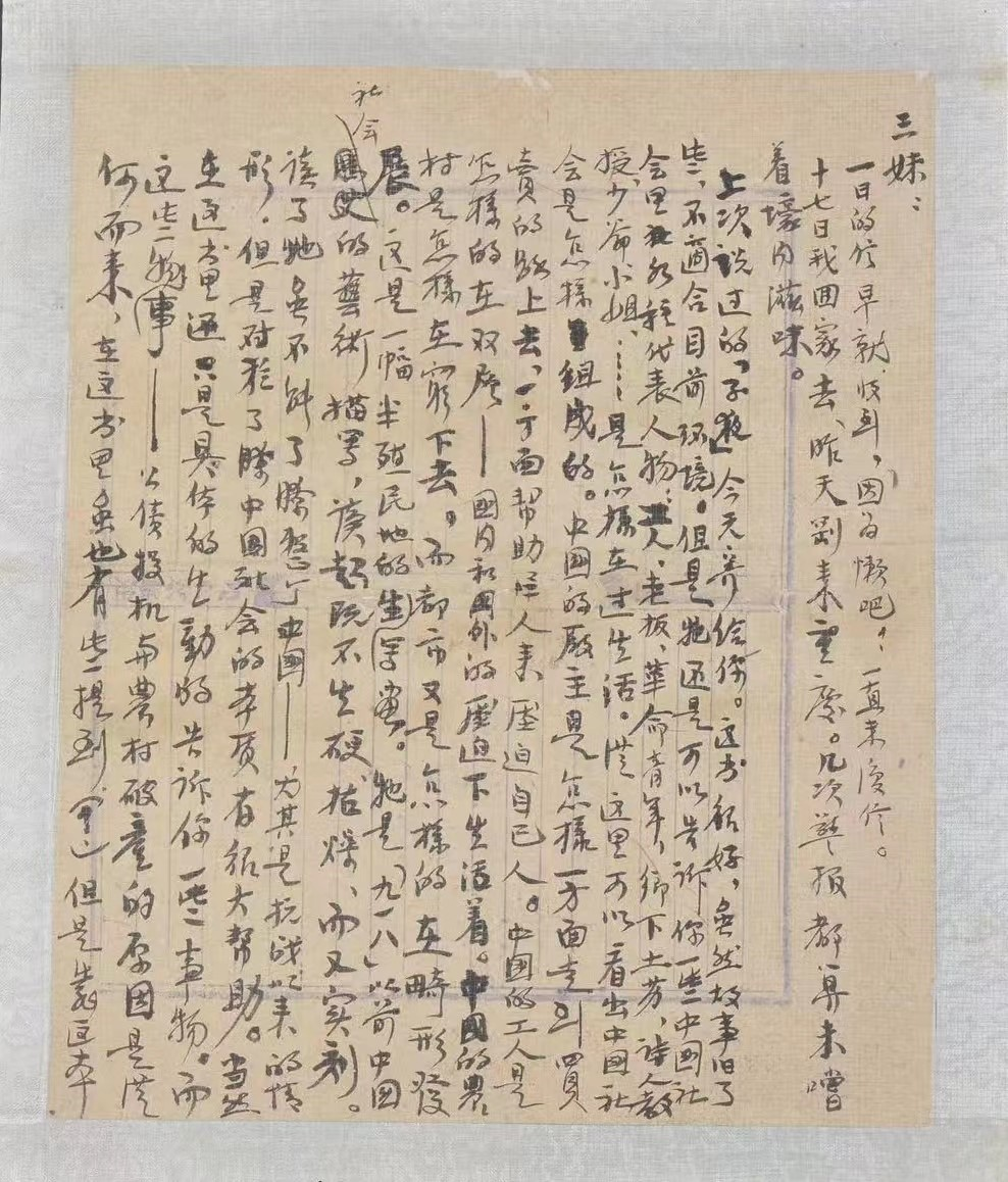 信中,许晓轩还希望三妹多读些社会科学方面的书籍,理解事物发展的规律。