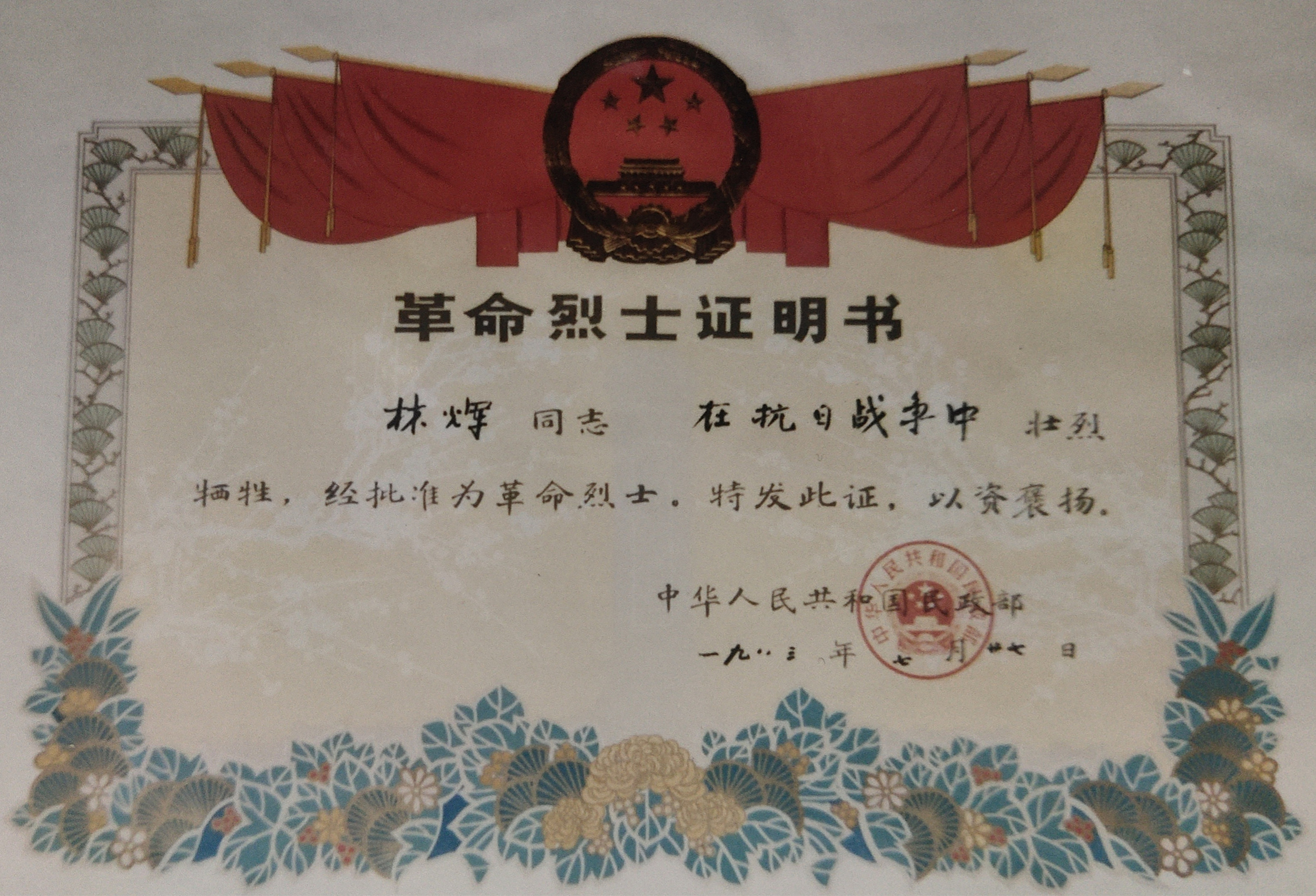 直到1986年,家人们才得知,林晖已在1945年9月攻打吴兴伪军据点时英勇牺牲。