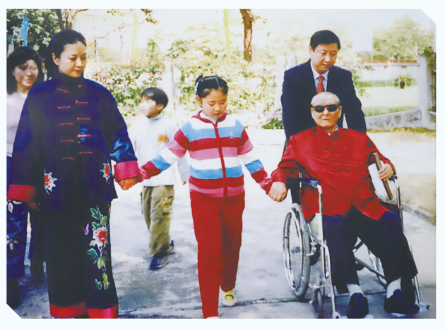 习仲勋和习近平一家。前排左起:彭丽媛、习明泽、习仲勋,推轮椅者为习近平